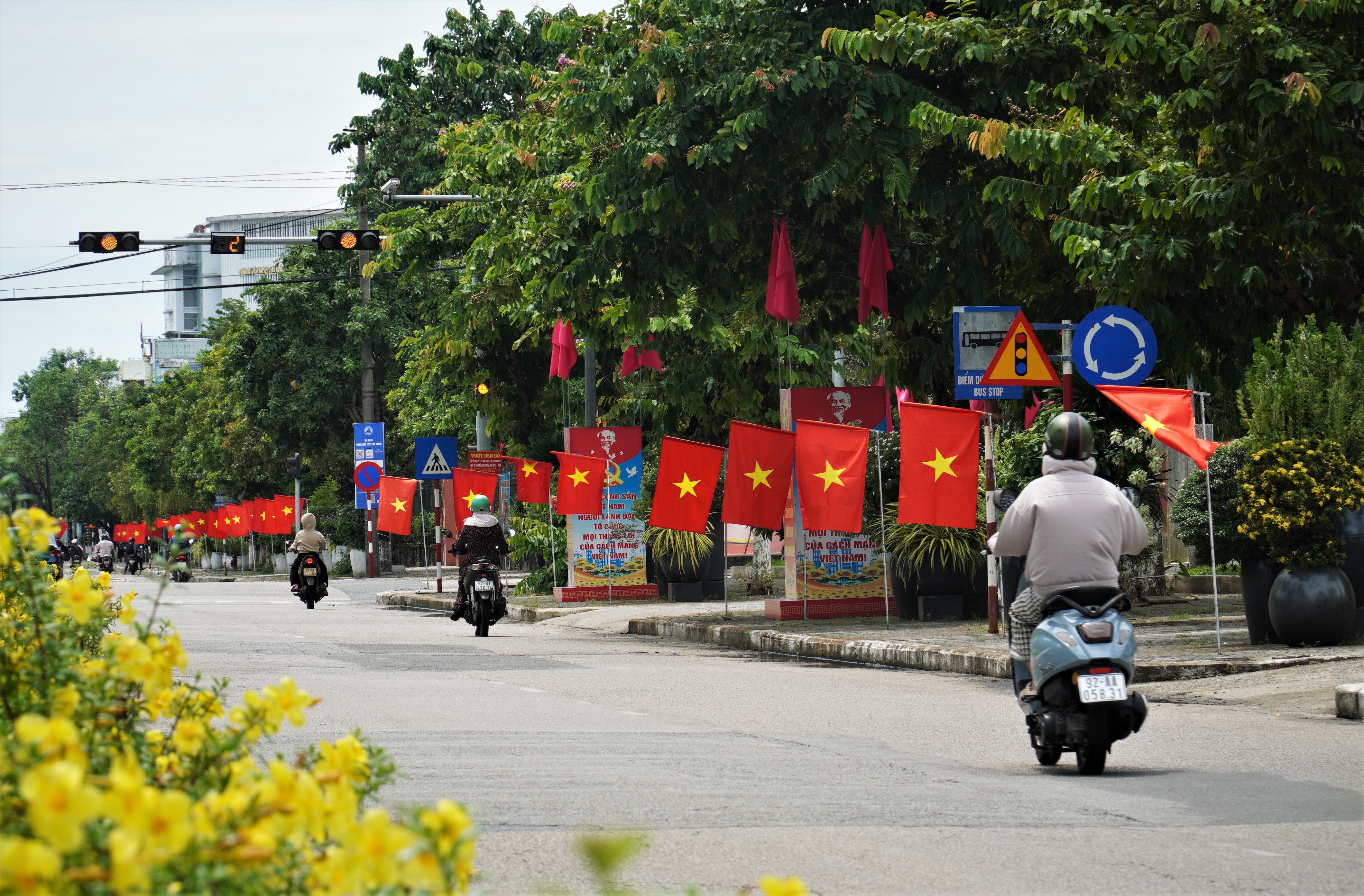 Người dân Đà Nẵng trang trí cờ hoa, pano, tạo diện mạo đô thị rực rỡ trước thềm Đại hội