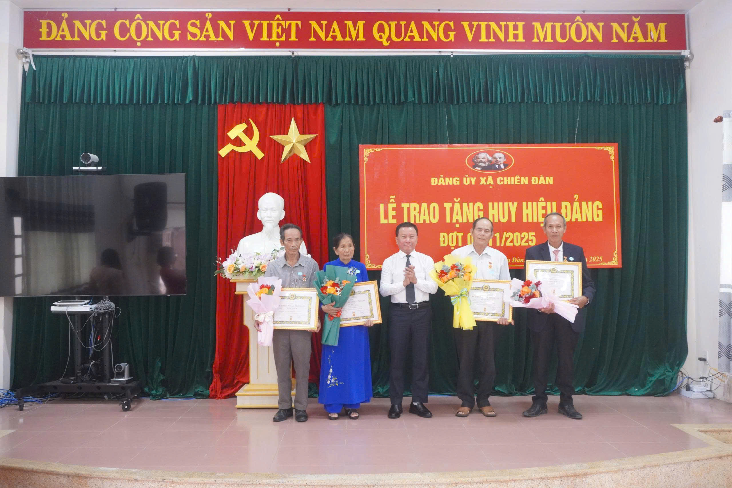 Trong đợt này, Đảng bộ xã Chiên Đàn có 15 đồng chí được trao tặng Huy hiệu Đảng: 01 đồng chí Huy hiệu 60 năm, 01 đồng chí Huy hiệu 50 năm, 03 đồng chí Huy hiệu 45 năm, 06 đồng chí Huy hiệu 40 năm và 04 đồng chí Huy hiệu 30 năm tuổi Đảng.