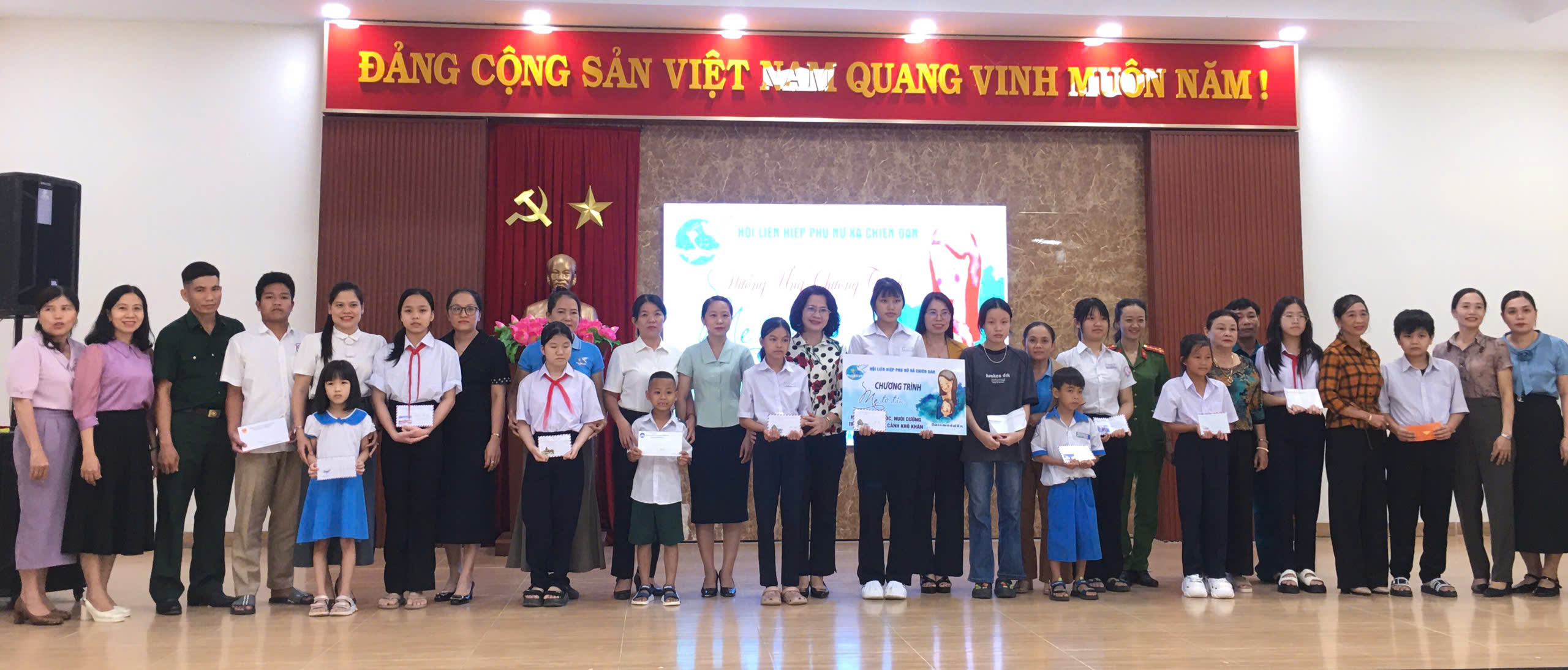 Đồng thời, tại Chương trình, Hội LHNP xã Chiên Đàn kêu gọi 13 tổ chức, cá nhân trong và ngoài địa bàn xã nhận đỡ đầu 13 trẻ em bất hạnh của xã.