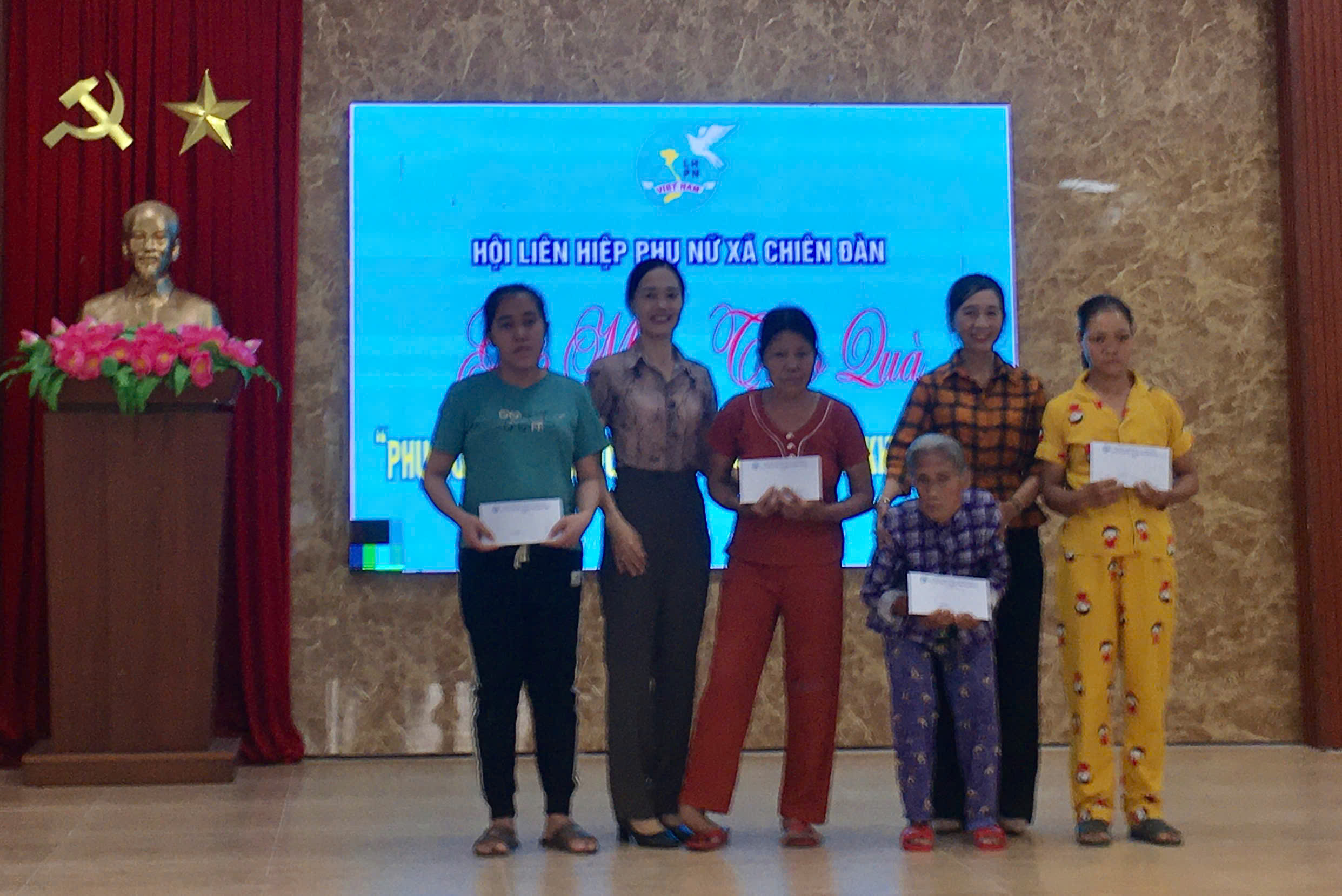 Hội LHPN xã Chiên Đàn đã kêu gọi các tổ chức, cá nhân hảo tâm trao 10 suất quà cho trẻ em có hoàn cảnh đặc biệt khó khăn ( mỗi suất 300.000 đồng). Tiếp tục duy trì mô hình “ Phụ nữ Chiên Đàn đồng hành cùng phụ nữ khuyết tật”, Hội LHPN xã đã trao 5 suất quà cho 5 phụ nữ khuyết tật, tổng trị giá 7 triệu đồng.