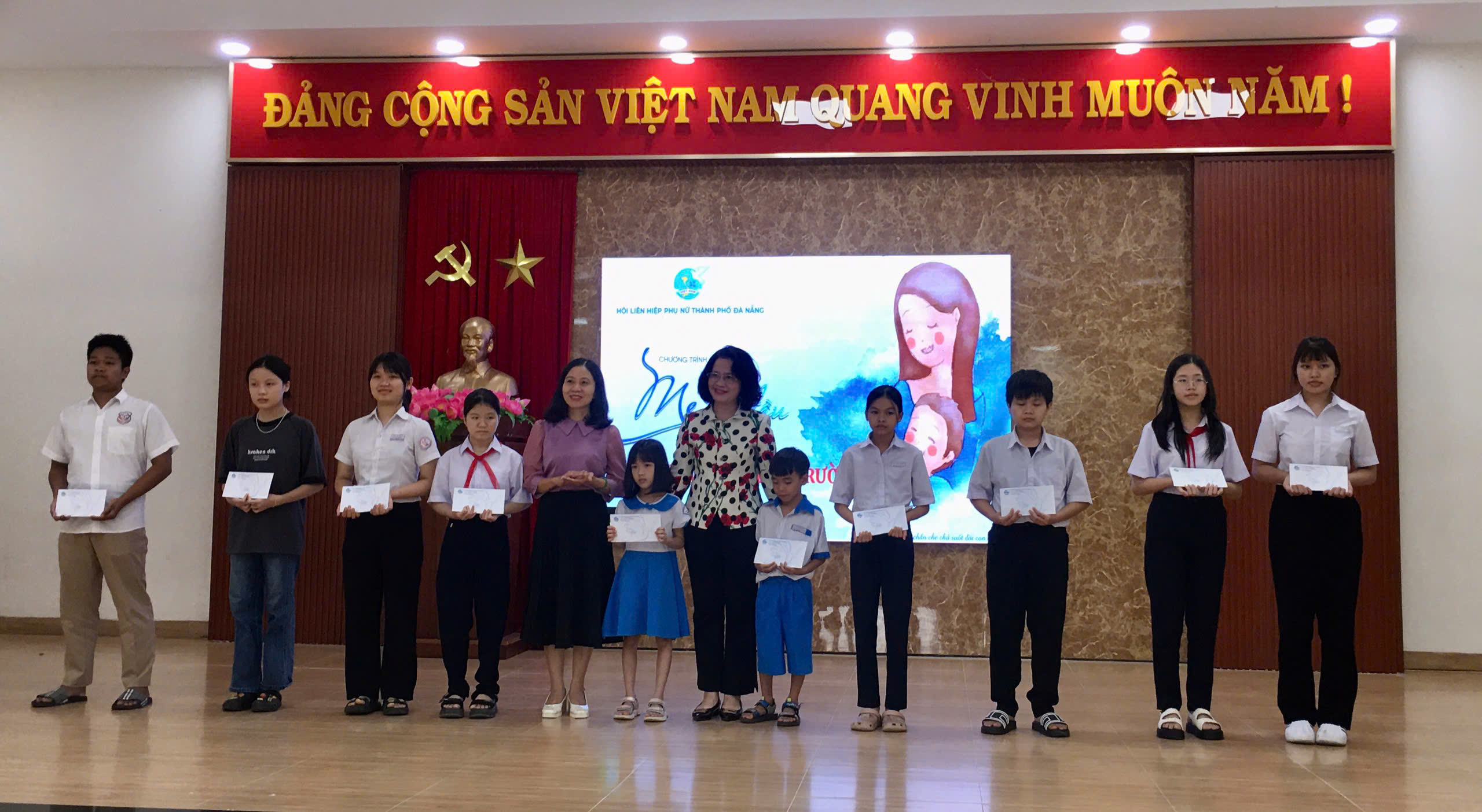 Tại Chương trình “ Mẹ đỡ đầu- Tiếp bước cho em đến trường” Hội LHPN thành phố đã trao 30 suất quà cho trẻ em khuyết tật, trẻ em mồ côi khó khăn của 3 xã Chiên Đàn, Tây Hồ, Phú Ninh ( mỗi xã 10 suất, mỗi suất 400.000 đồng).