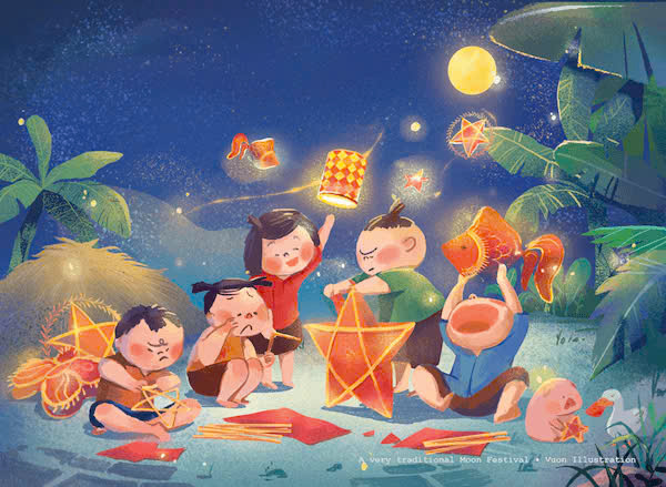 Không ai lớn lên mà không từng có một mùa Trung thu để nhớ. Đó là những đêm rước đèn, chân đất chạy lon ton cùng lũ bạn khắp xóm, đèn ông sao sáng rực cả con đường làng. Là tiếng trống lân rộn ràng vang lên từng hồi như đánh thức mọi giác quan tuổi thơ. Là mâm cỗ Trung thu do mẹ và bà bày biện tỉ mỉ với quả hồng đỏ, quả bưởi xanh, bánh nướng, bánh dẻo thơm lừng, xen lẫn là những món quà nhỏ mẹ mua từ chợ về, làm quà cho con sau buổi học.