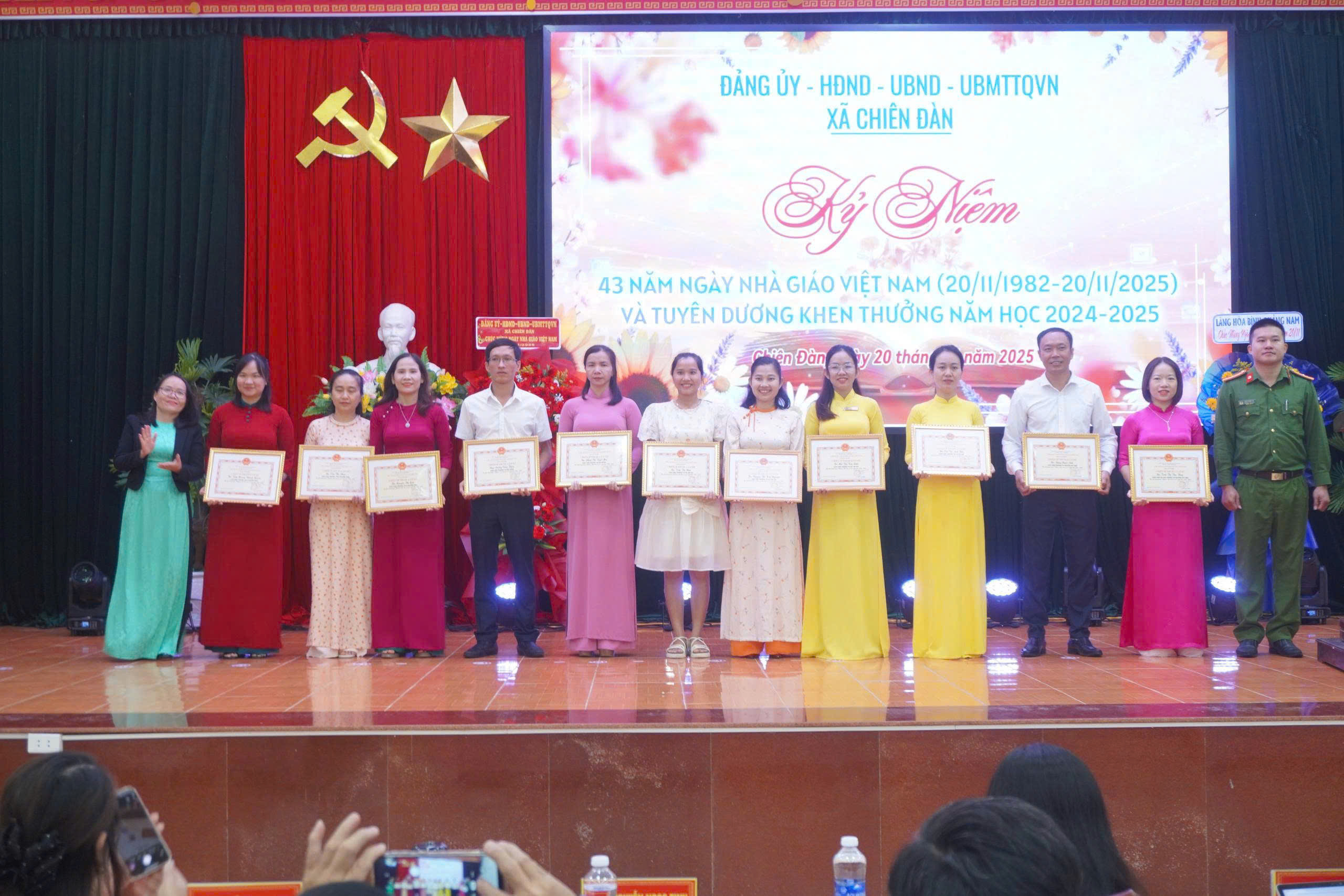 Tại chương trình, lãnh đạo xã đã ghi nhận những nỗ lực của đội ngũ cán bộ, giáo viên trong năm học qua, đồng thời biểu dương các tập thể và cá nhân đạt thành tích xuất sắc.